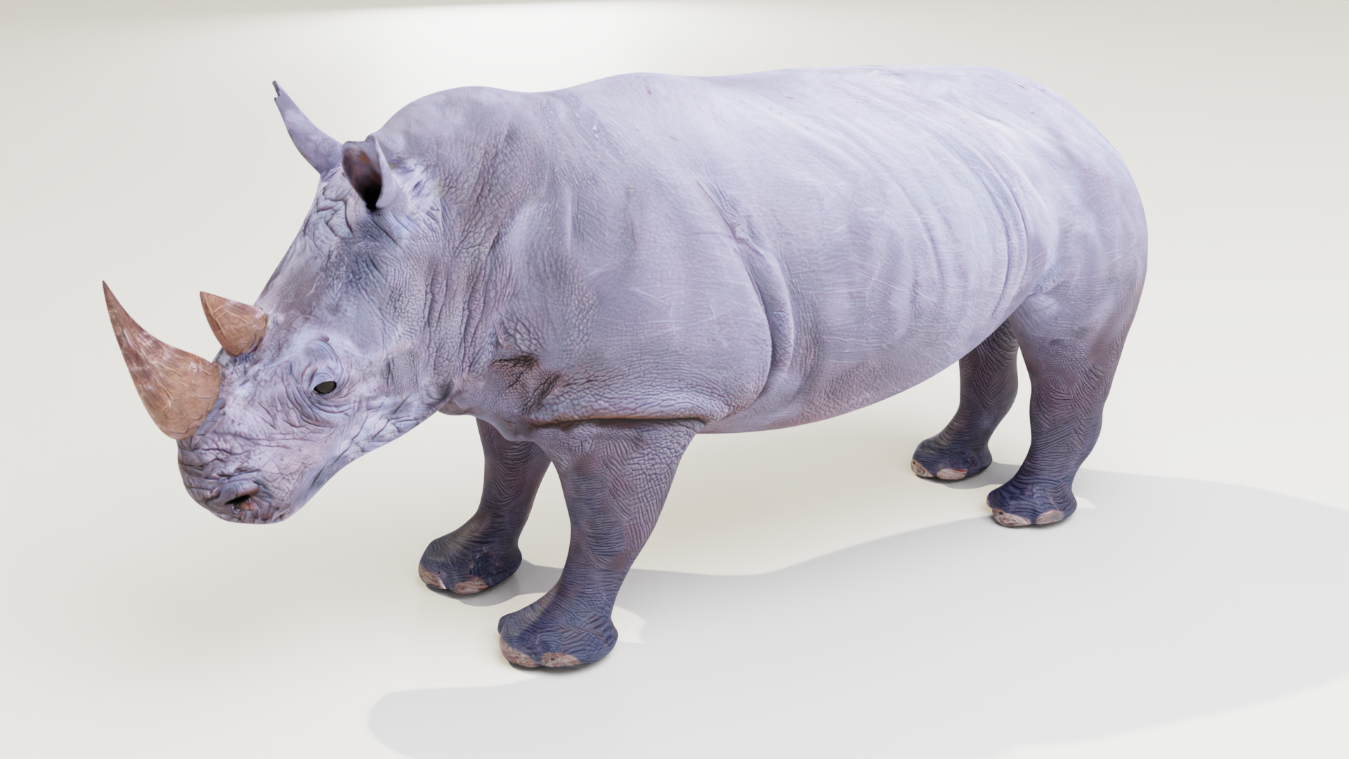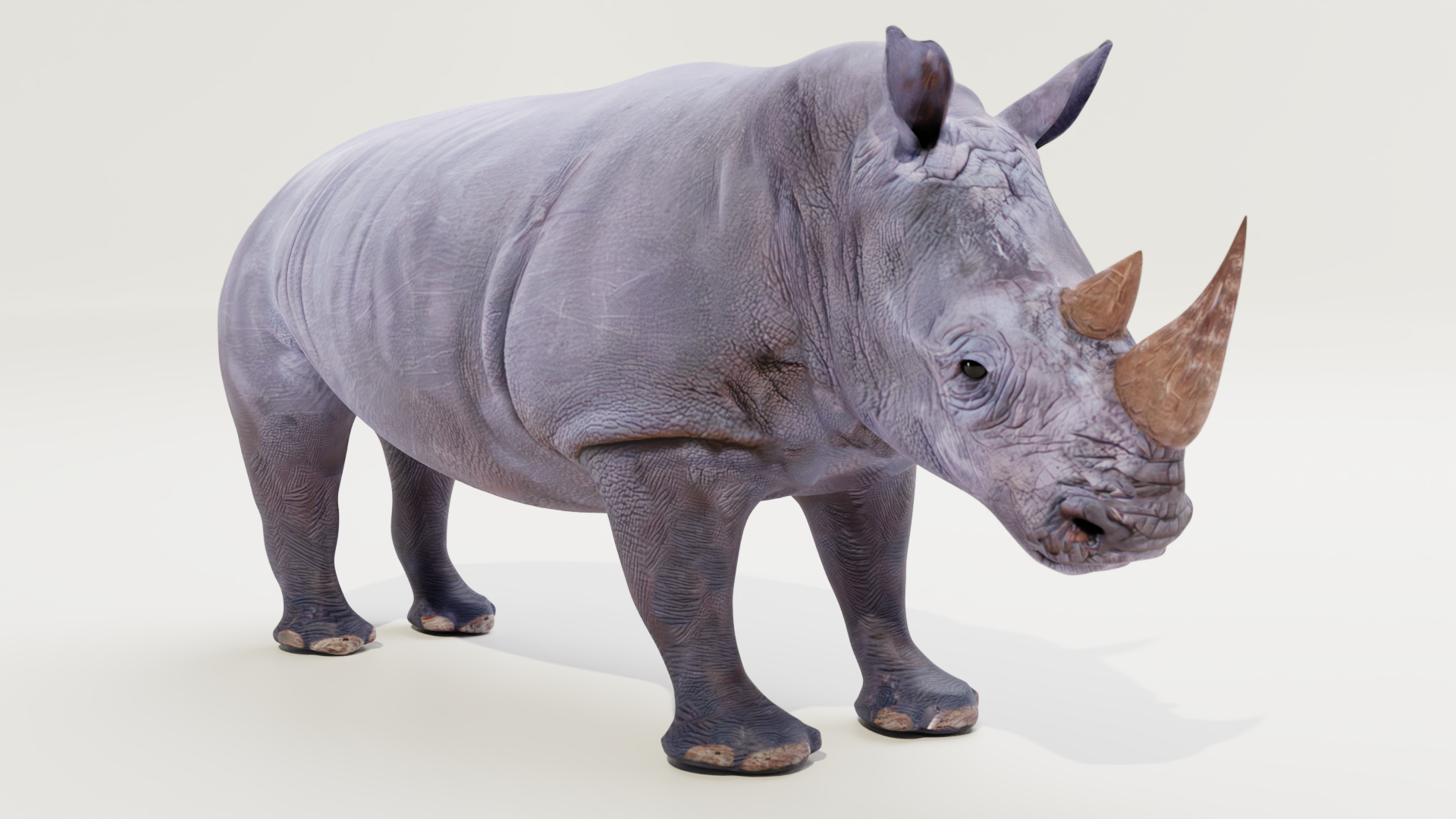 This delivery includes a model of a white rhino, suitable for realistic renders. The included models is delivered with 4K textures.